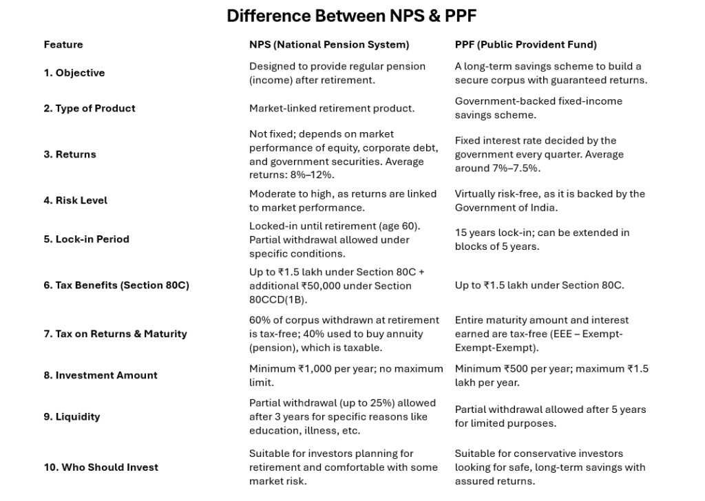 NPS is one of the best retirement planning tools offering a blend of security + market-linked growth + tax savings. With low costs, flexibility, and lifelong pension benefits, it is ideal for individuals who want a secured and stress-free retirement.
